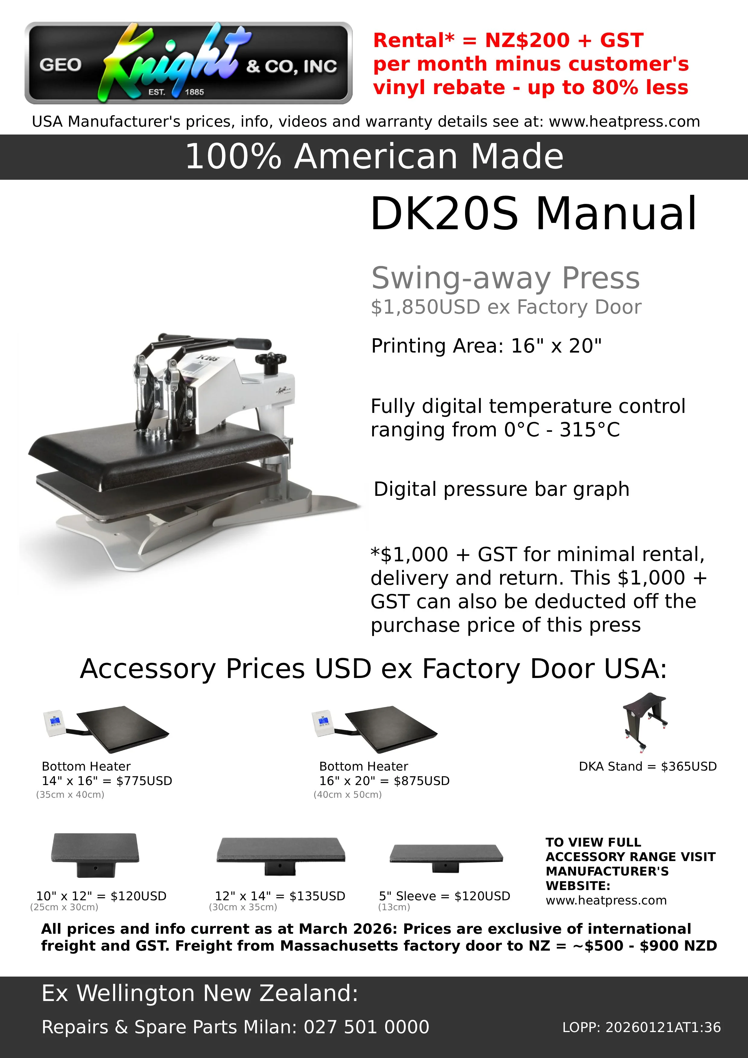 Geo Knight Heat Presses Multipurpose Press Operators Manual Automatic Air Press Operators Manual Swing-away Air Press Operators Manual Swing-away Press Operators Manual Geo Knight Info: Geo Knight Website